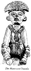 benannt. Der Mann sitzt flach auf dem Boden, er trägt eine Federkrone,