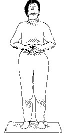 steht mit den Füßen parallel, mit leicht gekrümmten Knien.